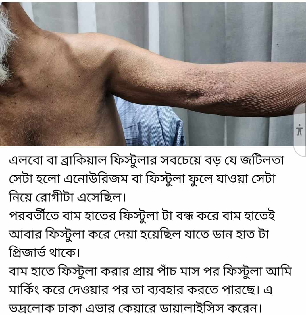💥একটা ফিস্টুলা থেকে সর্বোচ্চ বেনিফিট পেতে চাইলে এটা এনসিওর করতে হবে যে, ফোরআর্ম ফিস্টুলা টা যাতে সর্বোচ্চ গুণগত মানের হয়। ফোরআর্ম ফিস্টুলা সাধারণত বাম হাত অথবা ডান হাত যে হাতেই হোক তবুও ভালো কিন্তু অবশ্যই এলবো বা ব্র্যাকিয়াল ফিস্টুলা এভয়েড করা উচিত তা যত বড় জায়গা থেকেই অফার করা হোক।